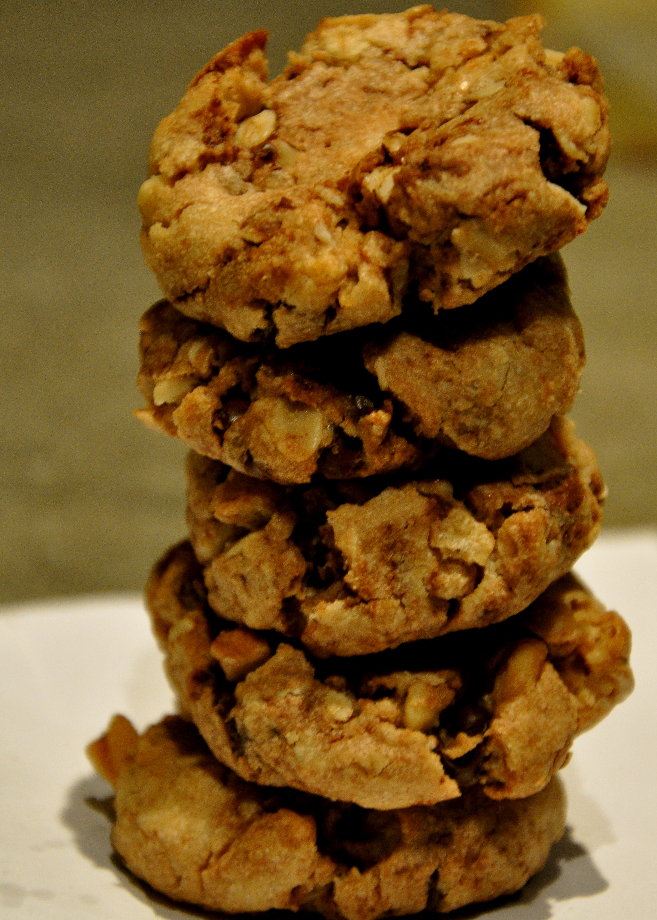 It’s amazing what happens in a kitchen and how new recipes come about. Recently, I was testing a new recipe for my cut-out cookies in hopes of making them thicker, less fragile and easier to work with. I made a mistake with one of the key ingredients, but the dough tasted so good, that I did not want it to go to waste. I decided to start going around my kitchen and adding in ingredients. Some oats here, spices there, and nuts and chocolate to finish it off. Of course, there are a few ingredients I will keep to myself, but you get the idea. In the oven they went, and voila! An amazing new cookie that I can’t wait for you to try……The Kitchen Sink Cookie ($12 per dozen).